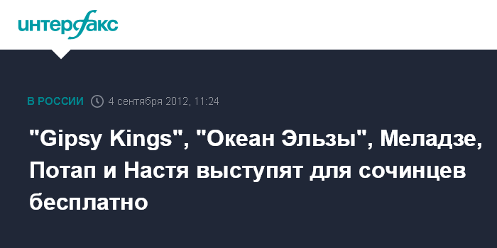 "Gipsy Kings", "Океан Эльзы", Меладзе, Потап и Настя выступят для сочинцев бесплатно