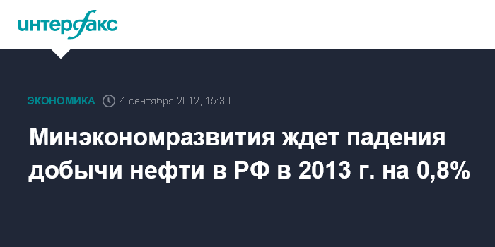 Москва. 4 сентября. INTERFAX.RU - Минэкономразвития по-прежнему ожидает падения добычи нефти в России в 2013 году на 0,8% - до 510 млн тонн по сравнению с рекордным ростом до 514 млн тонн, который может быть достигнут в текущем году, говорится в материалах к заседанию правительственной комиссии по бюджетным проектировкам, с которыми ознакомился "Интерфакс".