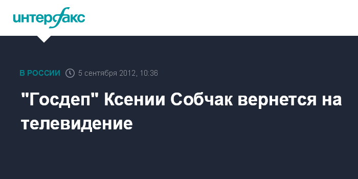 Москва. 5 сентября. INTERFAX.RU - Программа "Госдеп" Ксении Собчак c 9 сентября будет выходить на телеканале "Дождь".