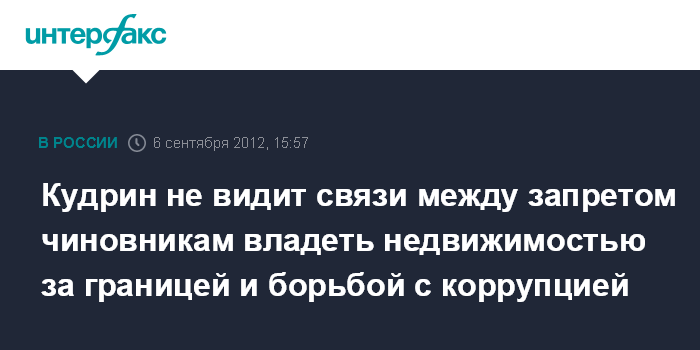Кудрин не видит связи между запретом чиновникам владеть недвижимостью за границей и борьбой с коррупцией