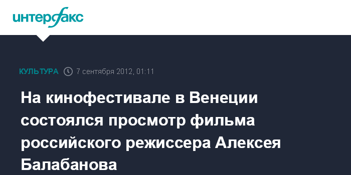 На кинофестивале в Венеции состоялся просмотр фильма российского режиссера Алексея Балабанова