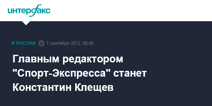 Москва. 7 сентября. INTERFAX.RU - Главным редактором газеты "Спорт-Экспресс" станет известный спортивный журналист Константин Клещев, работавший в издании в 1992-2003 годах.