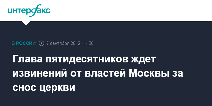Глава пятидесятников ждет извинений от властей Москвы за снос церкви