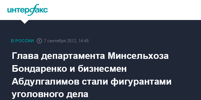 Глава департамента Минсельхоза Бондаренко и бизнесмен Абдулгалимов стали фигурантами уголовного дела