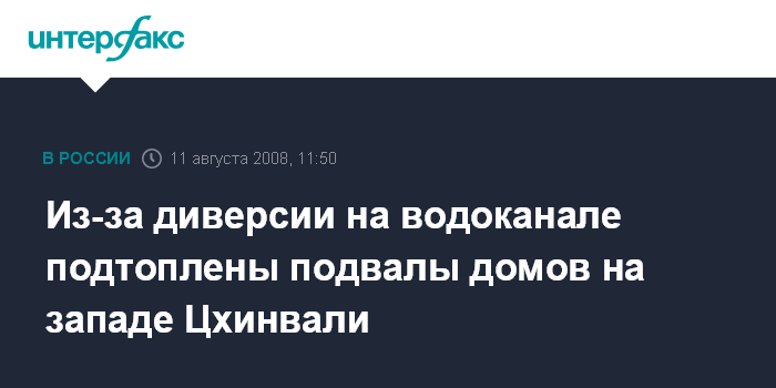 "Грузинская сторона сегодня сумела взорвать Кехвский водоканал, в результате чего в западной части Цхинвала, в районе улицы Целинникова затоплены подвалы домов, в которых от бомбардировок укрывались мирные жители", - сообщает в понедельник сайт правительства Южной Осетии со ссылкой на пресс-службу МВД республики.