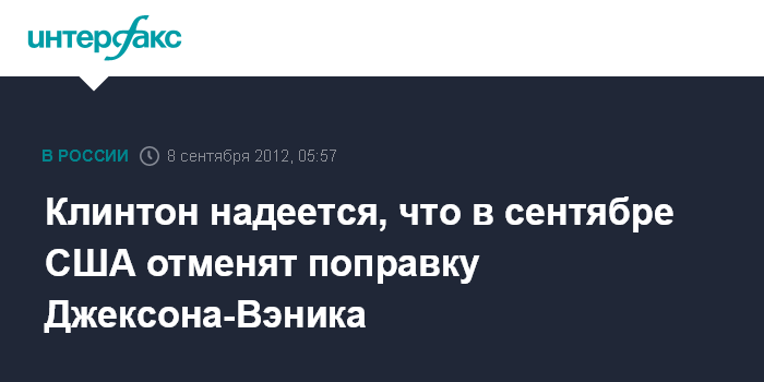 Клинтон надеется, что в сентябре США отменят поправку Джексона-Вэника