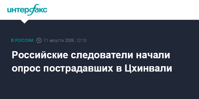 Цхинвали. 11 августа. INTERFAX.RU - В столице Южной Осетии Цхинвали приступили к работе военные следователи Следственного комитета при прокуратуре (СКП) РФ. Как передал корреспондент "Интерфакса", следователи опрашивают местных жителей, в том числе раненых и потерпевших, в качестве свидетелей.