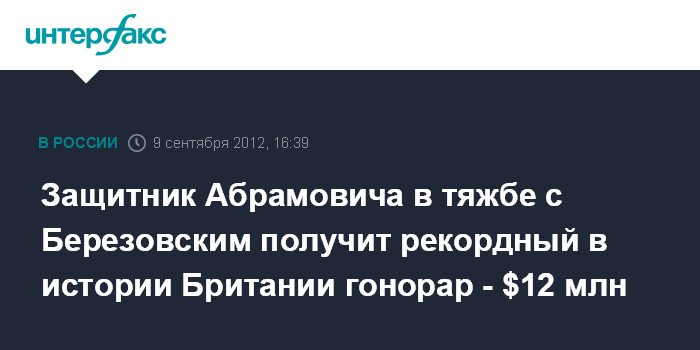 Защитник Абрамовича в тяжбе с Березовским получит рекордный в истории Британии гонорар - $12 млн