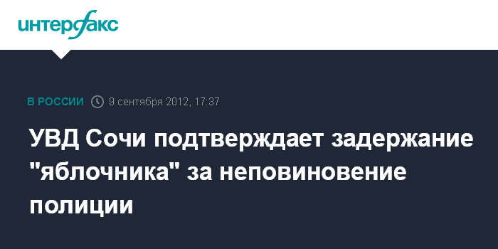 УВД Сочи подтверждает задержание "яблочника" за неповиновение полиции