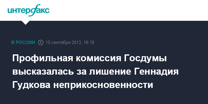 Москва. 10 сентября. INTERFAX.RU - Думская комиссия по проверке достоверности сведений о доходах и имуществе депутатов на заседании в понедельник решила, что оснований для постановки на заседании Госдумы вопроса о лишении депутатского мандата "эсера" Геннадия Гудкова в связи с тем, что он, нарушая закон, совмещал работу депутата с предпринимательской деятельностью, достаточно.