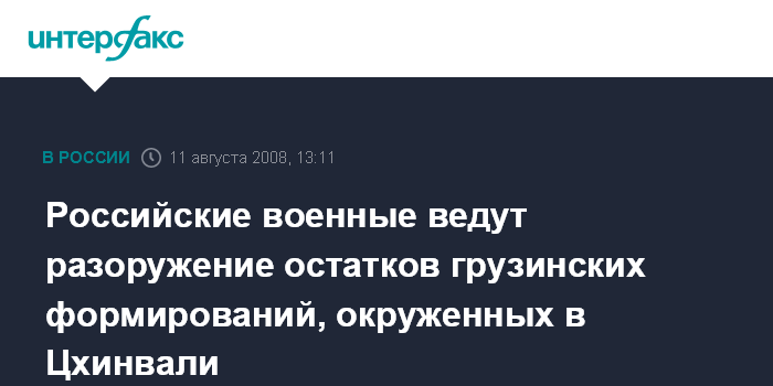 Российские военные ведут разоружение остатков грузинских формирований, окруженных в Цхинвали