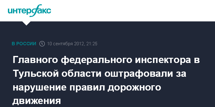Главного федерального инспектора в Тульской области оштрафовали за нарушение правил дорожного движения