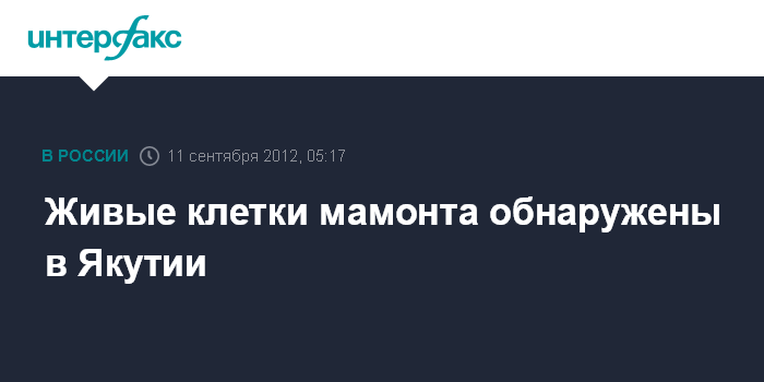 Живые клетки мамонта обнаружены в Якутии