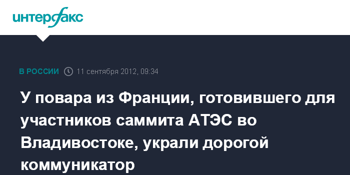 У повара из Франции, готовившего для участников саммита АТЭС во Владивостоке, украли дорогой коммуникатор
