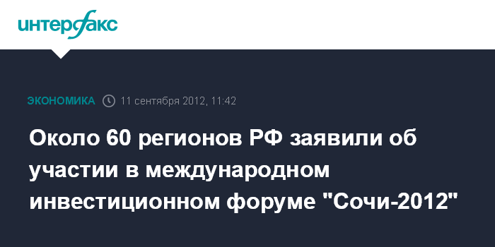 Около 60 регионов РФ заявили об участии в международном инвестиционном форуме "Сочи-2012"