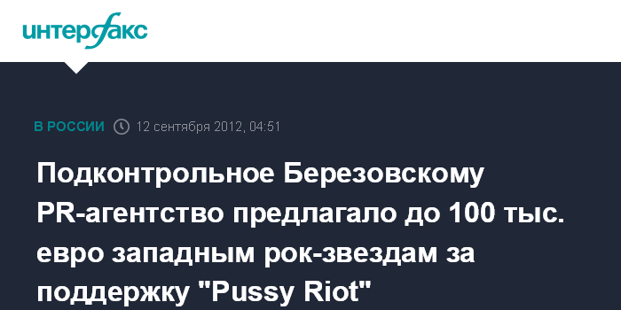 Подконтрольное Березовскому PR-агентство предлагало до 100 тыс. евро западным рок-звездам за поддержку "Pussy Riot"