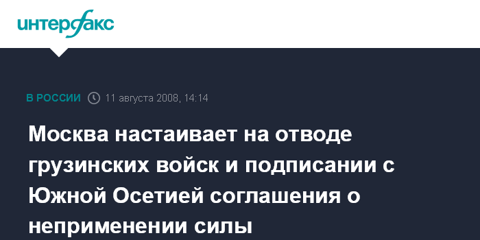 Москва настаивает на отводе грузинских войск и подписании с Южной Осетией соглашения о неприменении силы