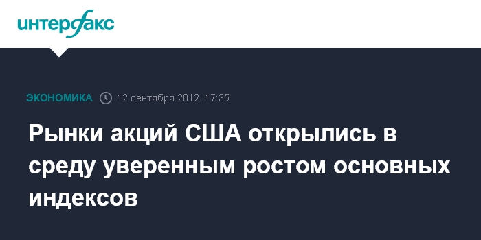Нью-Йорк. 12 сентября. INTERFAX.RU - Фондовые индексы США уверенно растут в первые минуты торгов в среду после того, как конституционный суд Германии разрешил ратифицировать соглашения о создании Европейского механизма стабильности (European Stability Mechanism, ESM), сообщило агентство Bloomberg.