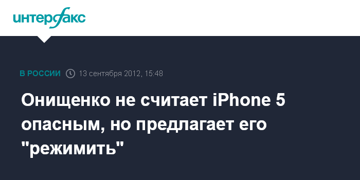 Москва. 13 сентября. INTERFAX.RU - Главный санитарный врач России Геннадий Онищенко не усматривает опасности в мобильных гаджетах, в том числе в новом устройстве от Apple.