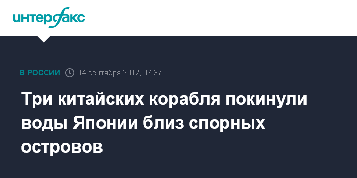 Токио. 14 сентября. ИНТЕРФАКС - Три из шести китайских патрульных кораблей вышли из территориальных вод Японии у спорных островов Сенкаку, передают японские СМИ.