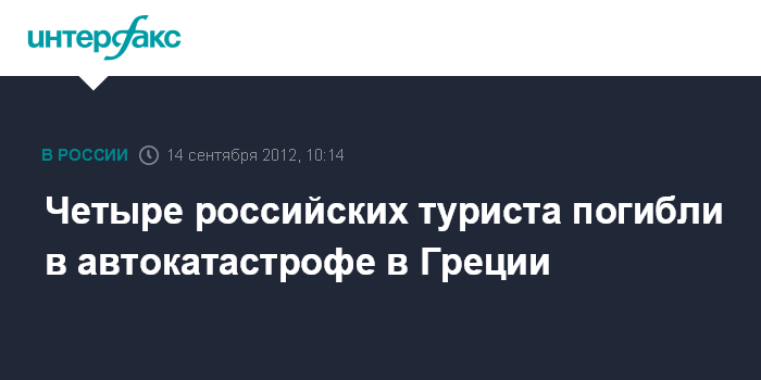Москва. 14 сентября. INTERFAX.RU - Генконсульство РФ в Салониках подтверждает гибель четырех российских туристов в ДТП