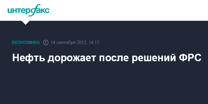 Нью-Йорк. 14 сентября. INTERFAX.RU - Стоимость нефти растет в ходе торгов в пятницу днем, инвесторы ожидают, что новые шаги Федеральной резервной системы (ФРС) поддержат восстановление экономики США (и спрос на топливо), а также опасаются новых перебоев с поставками с Ближнего Востока и из Северной Африки из-за очередной вспышки напряженности в регионе, сообщает агентство Bloomberg.