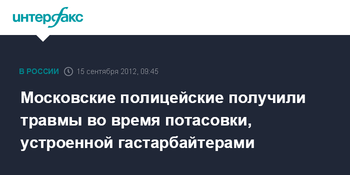 Москва. 15 сентября. INTERFAX.RU - Пятеро сотрудников московской полиции пострадали во время рейда по борьбе с нелегальной торговлей, где толпа оказала им сопротивление, сообщили "Интерфаксу" в пресс-службе ГУ МВД России по столице.