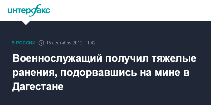 "Инцидент произошел в субботу утром в ходе проведения засадных действий. Один из военнослужащих части Минобороны РФ зацепил мину-растяжку, установленную, предположительно, боевиками, и получил тяжелые ранения", - сообщил агентству "Интерфакс-Юг" источник в правоохранительных органах Цумадинского района.