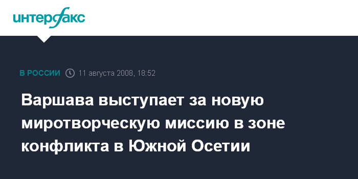 Москва. 11 августа. INTERFAX.RU - Польша выступает за изменение формата миротворческой миссии в зоне грузино-югоосетинского конфликта.