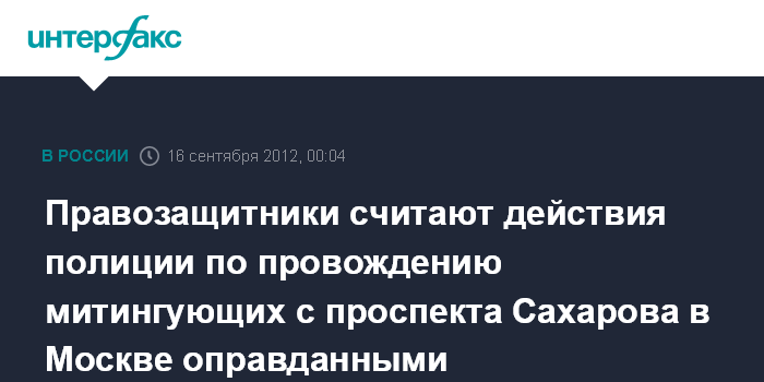 Москва. 15 сентября. INTERFAX.RU - Общественные наблюдатели положительно оценили действия столичной полиции по провождению граждан с места проведения акции на проспекте Сахарова в центре Москвы. "Я считаю, что действия полиции были абсолютно оправданы", - сказал член Общественного совета Главного управления МВД по Москве Владимир Химаныч.