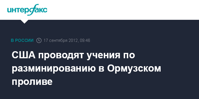 Дубай. 17 сентября. INTERFAX.RU - Американские военные в понедельник возглавили учения по разминированию при участии еще 20 стран в Ормузском проливе, говорится в заявлении центрального командования ВМС страны в столице Бахрейна Манаме.