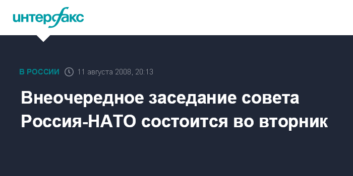 Владикавказ. 11 августа. INTERFAX.RU - Внеочередное заседание совета Россия-НАТО состоится во вторник днем по инициативе российской стороны.