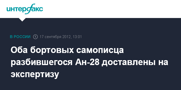 Москва. 17 сентября. INTERFAX.RU - "Черные ящики" разбившегося на Камчатке самолета Ан-28 доставили в Петропавловск-Камчатский для экспертизы, сообщил "Интерфаксу" источник в службах технического надзора региона.