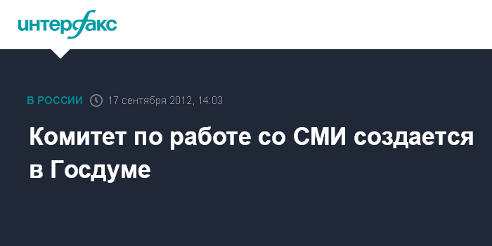 Москва. 17 сентября. INTERFAQX.RU - В Госдуме в ближайшую неделю будет сформирован еще один комитет - по работе со СМИ, сообщил журналистам в понедельник спикер Сергей Нарышкин.