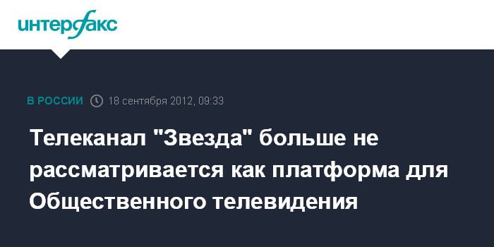 Телеканал "Звезда" больше не рассматривается как платформа для Общественного телевидения