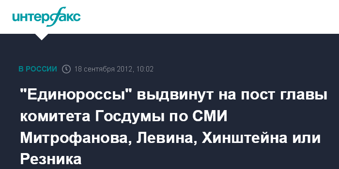 "Единороссы" выдвинут на пост главы комитета Госдумы по СМИ Митрофанова, Левина, Хинштейна или Резника