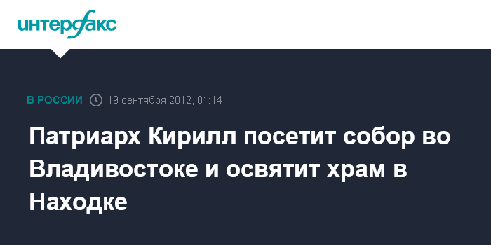 Патриарх Кирилл посетит собор во Владивостоке и освятит храм в Находке