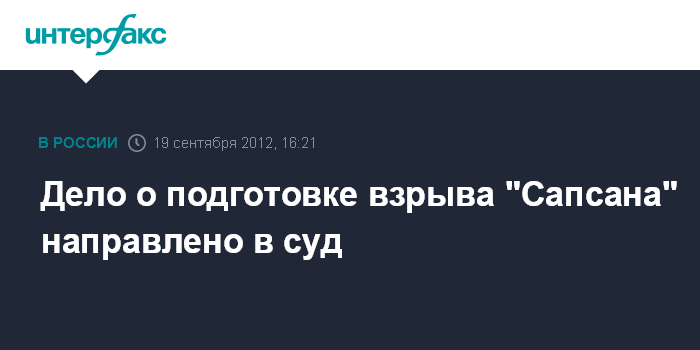 Москва. 19 сентября. INTERFAX.RU - Генеральная прокуратура России направила в суд дело о покушении на подрыв скоростного пассажирского поезда "Сапсан".