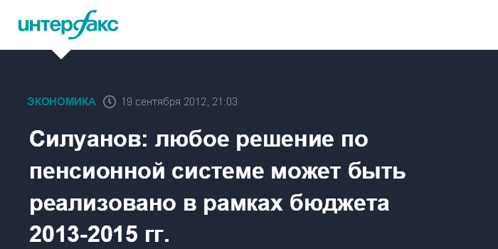 Силуанов: любое решение по пенсионной системе может быть реализовано в рамках бюджета 2013-2015 гг.