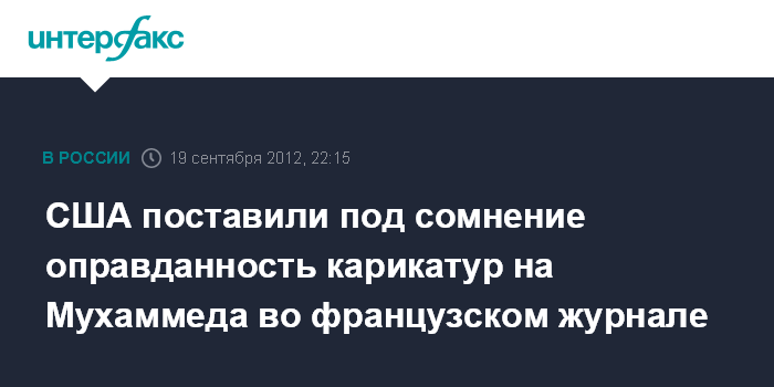 Вашингтон. 19 сентября. INTERFAX.RU - Власти США поставили под сомнение целесообразность публикации французским журналом Charlie Hebdo карикатур на пророка Мухаммеда, сообщил в среду официальный представитель Белого дома Джей Карни.