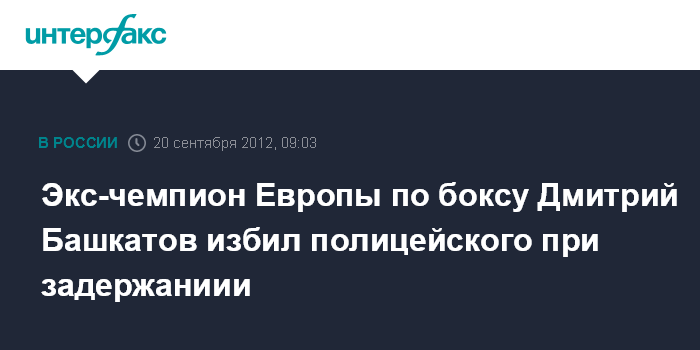 Экс-чемпион Европы по боксу Дмитрий Башкатов избил полицейского при задержаниии
