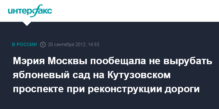 Мэрия Москвы пообещала не вырубать яблоневый сад на Кутузовском проспекте при реконструкции дороги