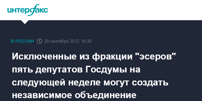 Исключенные из фракции "эсеров" пять депутатов Госдумы на следующей неделе могут создать независимое объединение