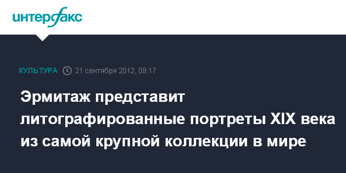 Санкт-Петербург. 21 сентября. INTERFAX.RU - Выставка "Портреты в русской литографии XIX века" открывается в пятницу в Эрмитаже, сообщает пресс-служба музея.