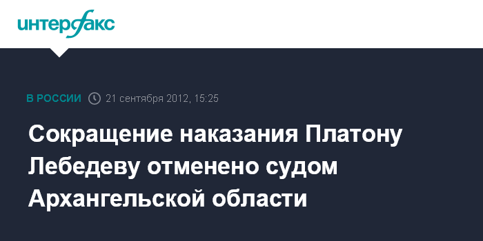 Сокращение наказания Платону Лебедеву отменено судом Архангельской области