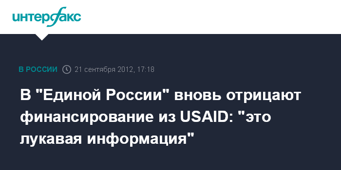 Сочи. 21 сентября. INTERFAX.RU - В "Единой России" называют "лукавой" информацию о том, что мероприятия партии якобы финансировались из фонда USAID.