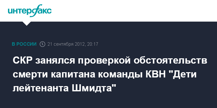 СКР занялся проверкой обстоятельств смерти капитана команды КВН "Дети лейтенанта Шмидта"