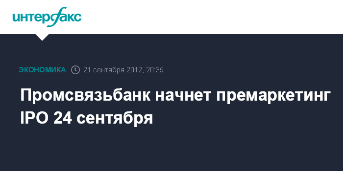 Промсвязьбанк начнет премаркетинг IPO 24 сентября