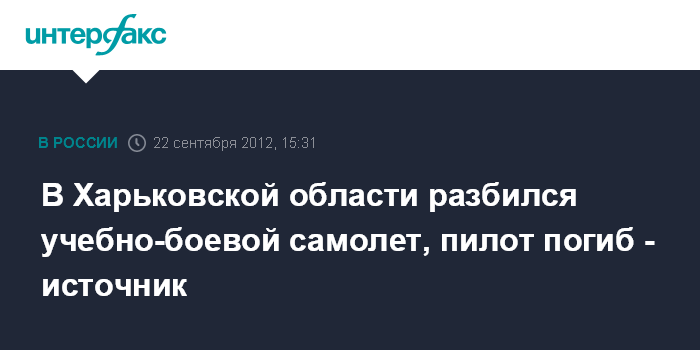 Киев. 22 сентября. INTERFAX.RU – В г. Чугуев (Харьковская обл.) разбился учебно-боевой самолет Л-39, погиб пилот-курсант, сообщил агентству "Интерфакс-Украина" источник в Генеральном штабе Украины.