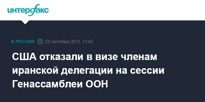 Дубай. 23 сентября. INTERFAX.RU - Власти США отказали в визе 20 из 160 членов делегации Ирана, которая примет участие в очередной сессии Генассамблеи ООН, сообщает в воскресенье телеканал "Аль-Арабия".